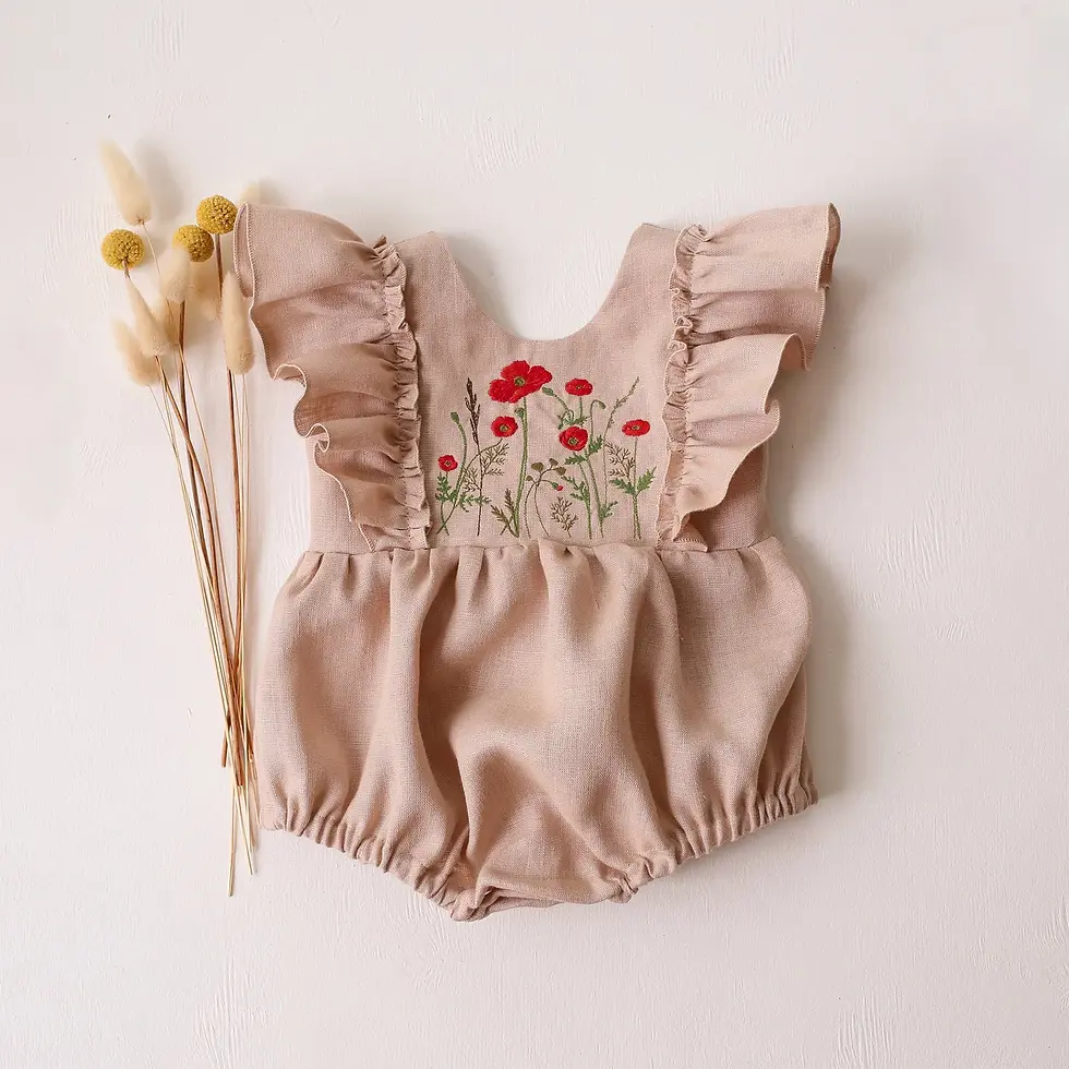 【 Dannie and Lilou 】Linen Short Sleeve Bubble Playsuit with Sailor Flap Collar