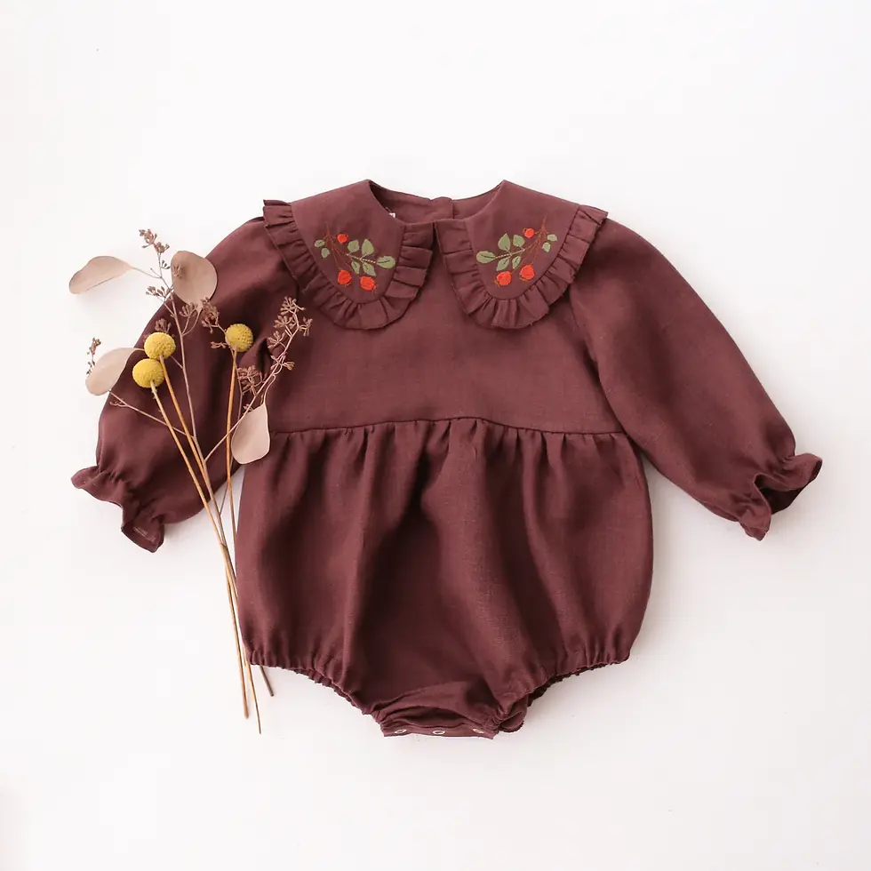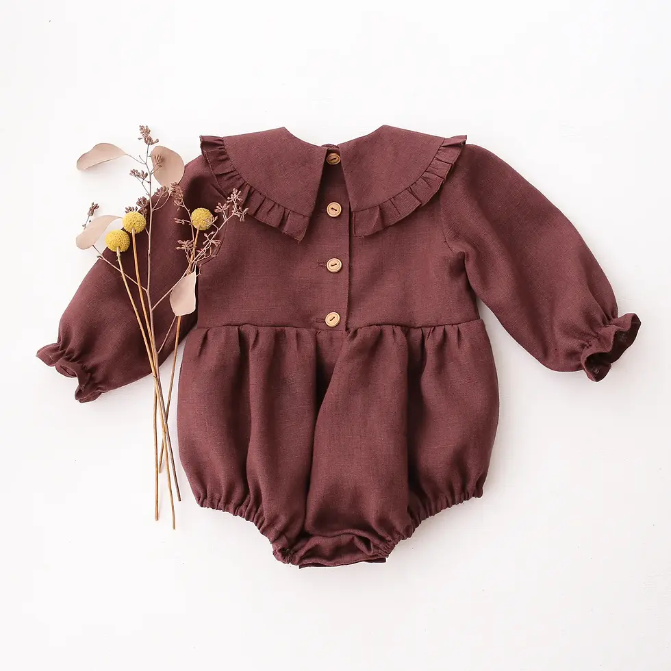 【 Dannie and Lilou 】Long Sleeve Bubble Onesie with Square Collar